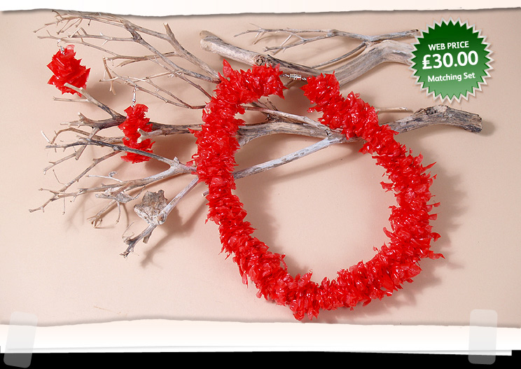 Bubblewrap, choker style necklace & earrings. Bright red