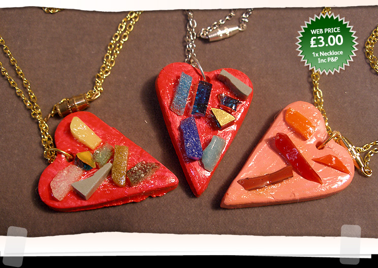 Heart Mosaic Necklaces in shades of red and pink (or any colour or shape to order) (£3.00 each inc. p&p)