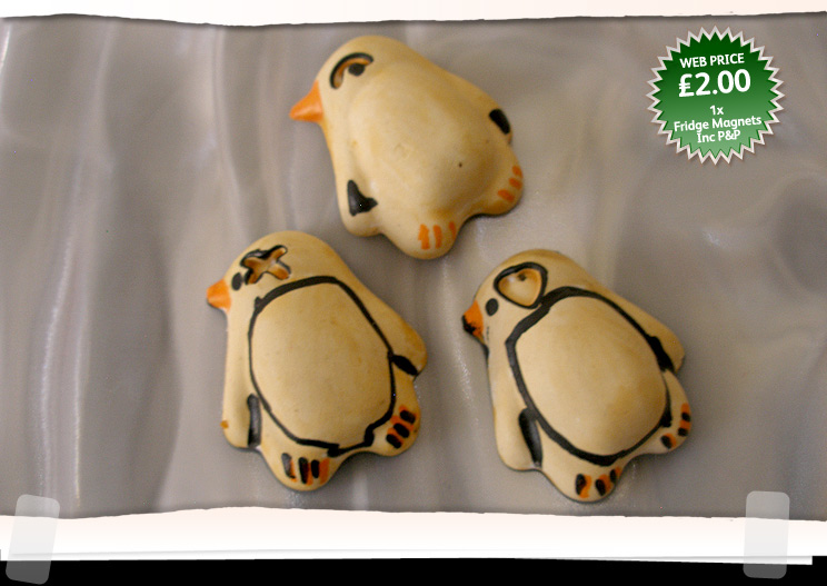 In addition to the chocolate and biscuit ones - I have a popular line in little penguins who have their own characters at £2.00 each (inc. p&p).